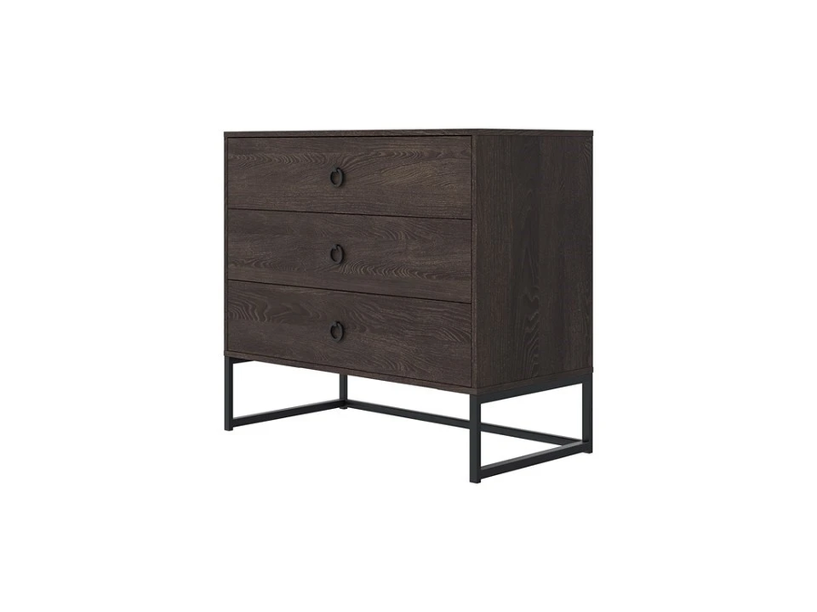 Frame - комод для тех, кто любит современный интерьер без лишних украшений. Контраст древесных фактур ЛДСП и чёрных металлических опор создаёт характерный лофт-образ, который одинаково уместен в городской квартире, на даче и в загородном доме. Три ящика с доводчиками - и никаких хлопков при закрытии.