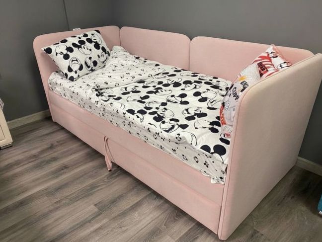 Кровать классная, пользуемся с удовольствием. Из главных плюсов — она действительно просторная, места хватает и детям, и даже взрослым, если нужно прилечь рядом. Каркас прочный, не шатается. Важный нюанс: мы брали вариант 90х200 с дополнительным местом. Имейте в виду, что для выкатной части нужен матрас поуже (80х200) и высотой от 10 до 18 см. В целом надежная и функциональная мебель