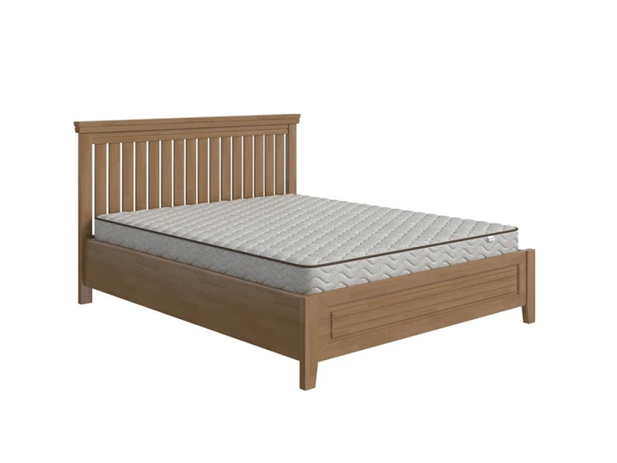 Кровать выполнена из натурального массива сосны или березы — экологичных пород древесины, известных своей прочностью и долговечностью. Каждая деталь тщательно отшлифована и покрыта безопасным лаком, сохраняющим природную текстуру дерева и защищающим поверхность от влаги и пыли.